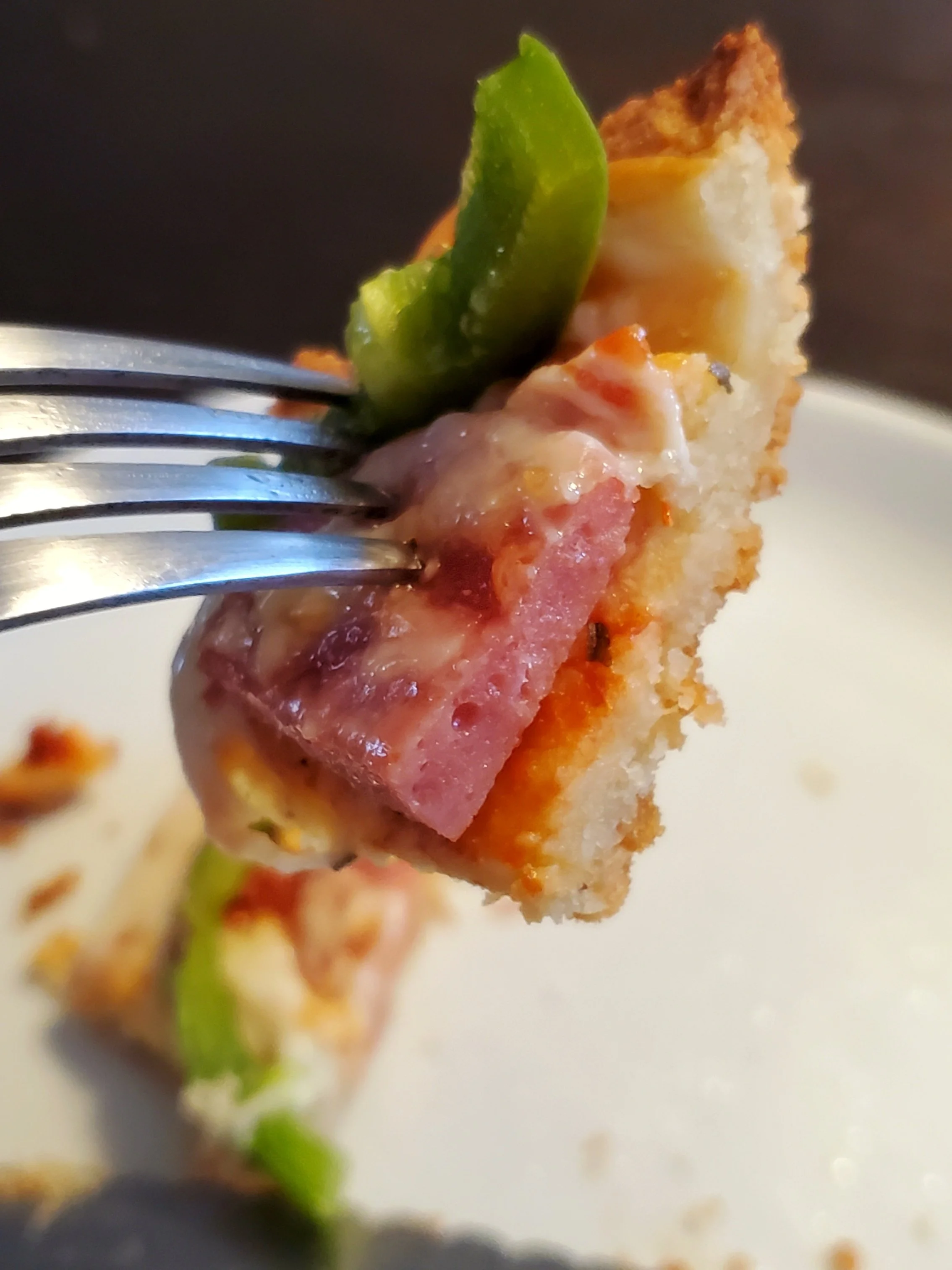 Oh, was this keto all-dressed deep dish pizza ever satisfying!