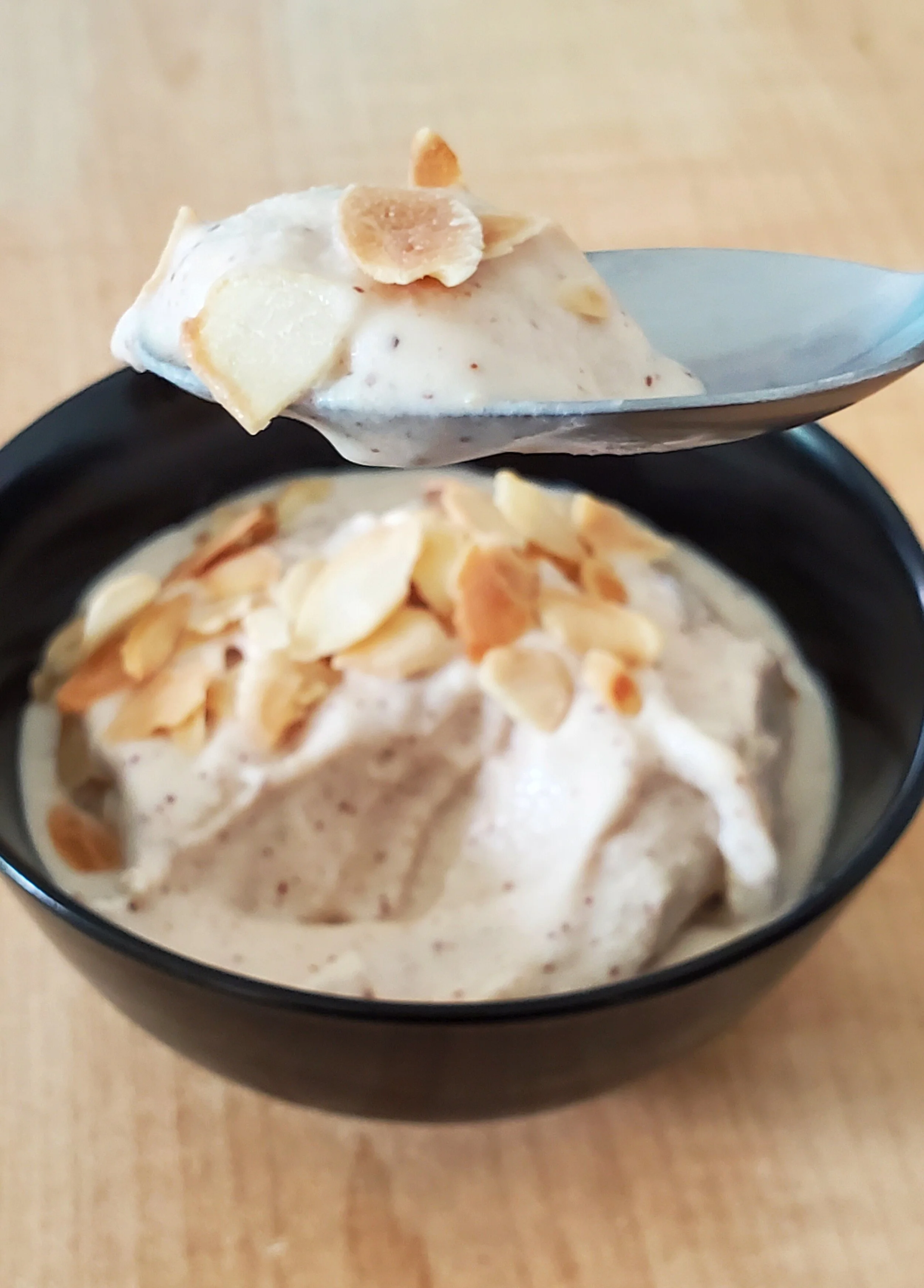 The result? A creamy and mildly nutty treat, topped with toasted almonds for crunch.