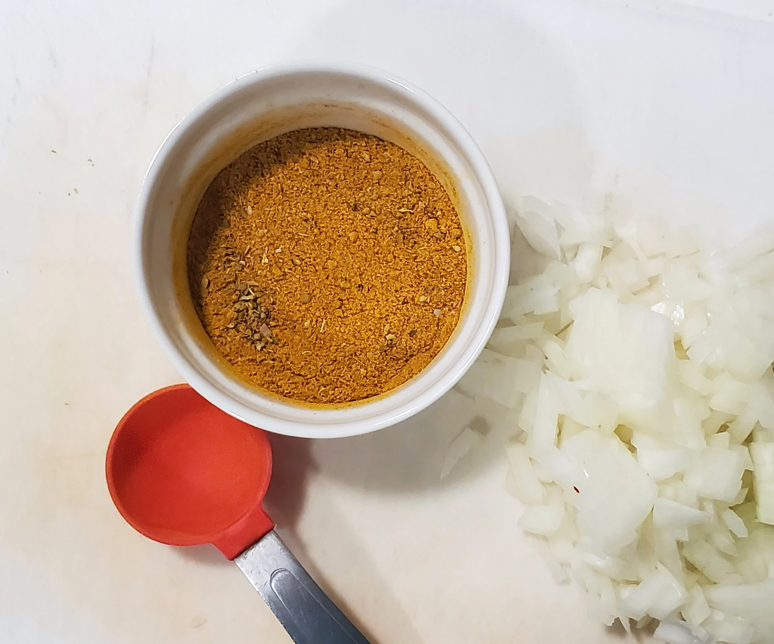 In a small bowl, combine curry powder, turmeric, cumin, oregano and kosher salt. Set aside.