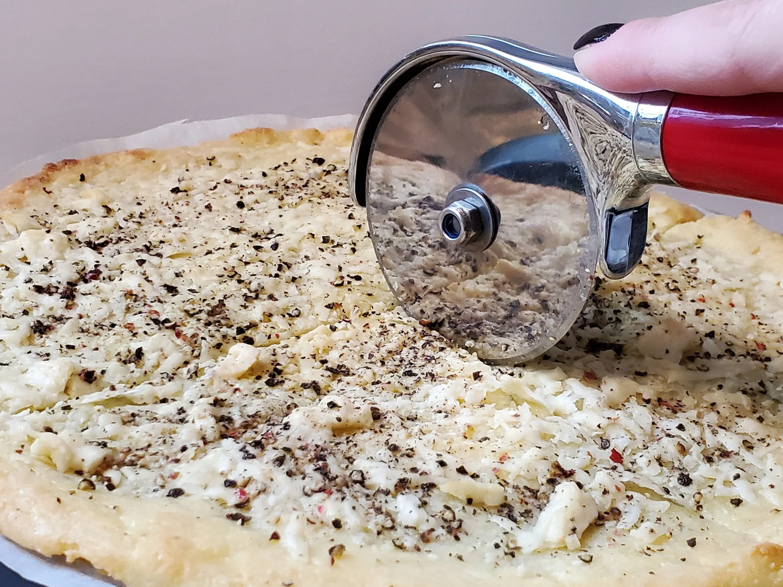This simple recipe takes all the goodness of cacio e pepe (cheese and pepper) and serves it up in pizza form. What’s not to like?!