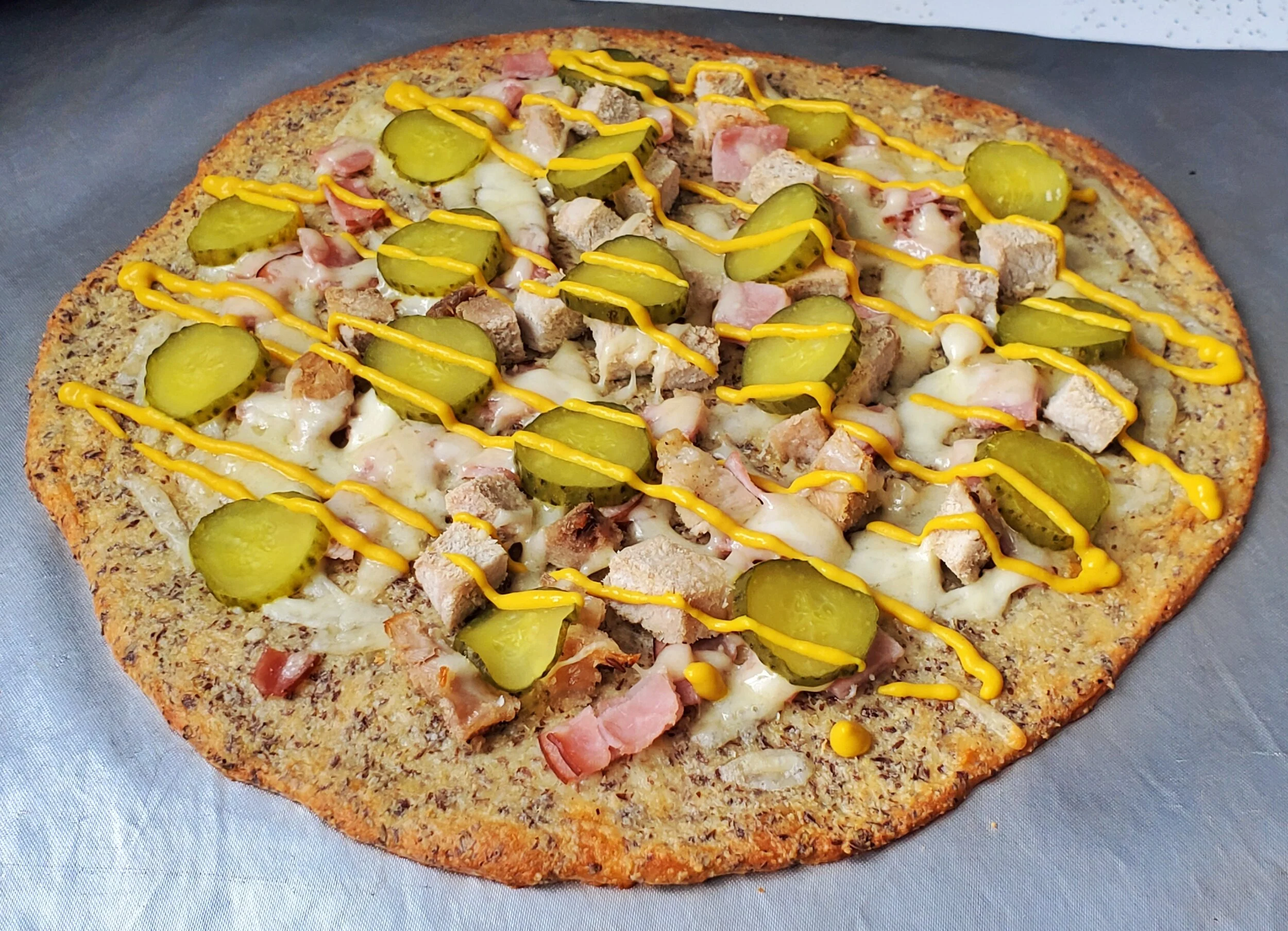 Since posting my Keto Smoked Meat Pizza recipe last month, I have been totally in love with adding mustard and cucumber to pizza!
