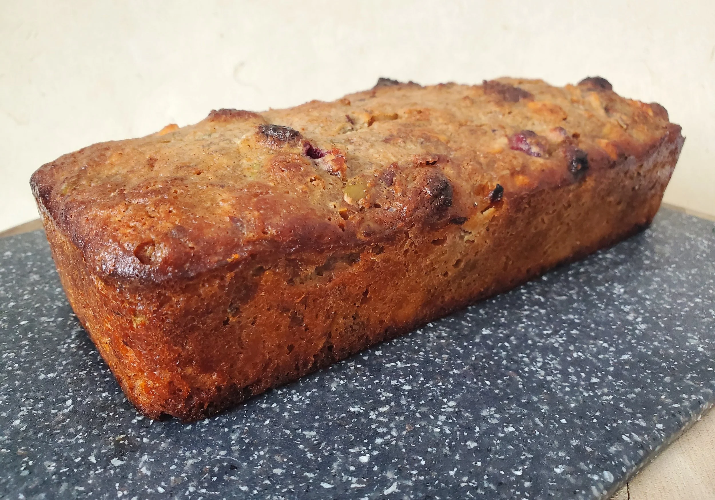 Optionally, while the fruitcake is cooling, you can brush the top with 1-2 Tbsp of the infused rum for a stronger boozy flavour.