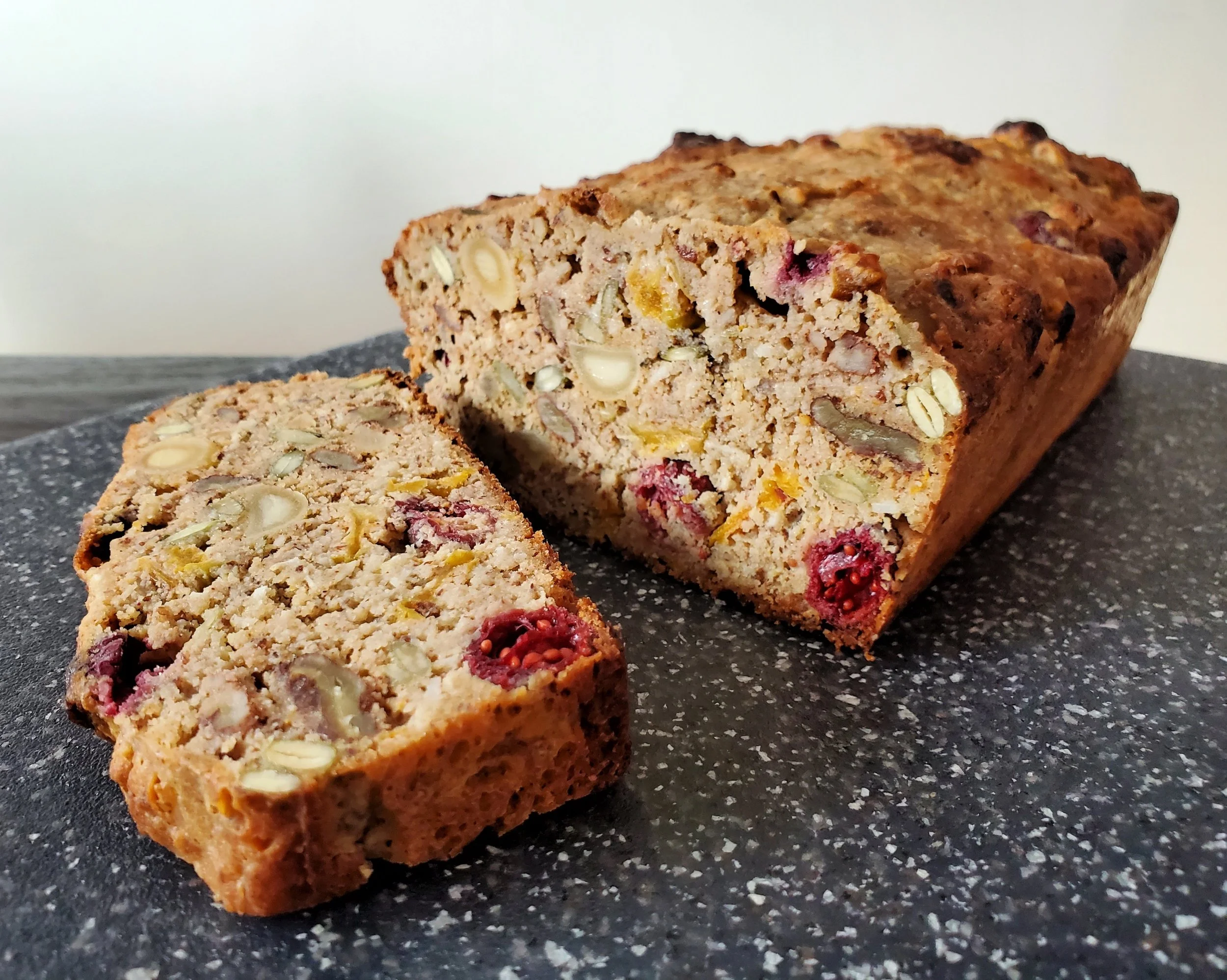 Transfer the mixture to a loaf pan and bake for 30-35 min, or until the top is golden.