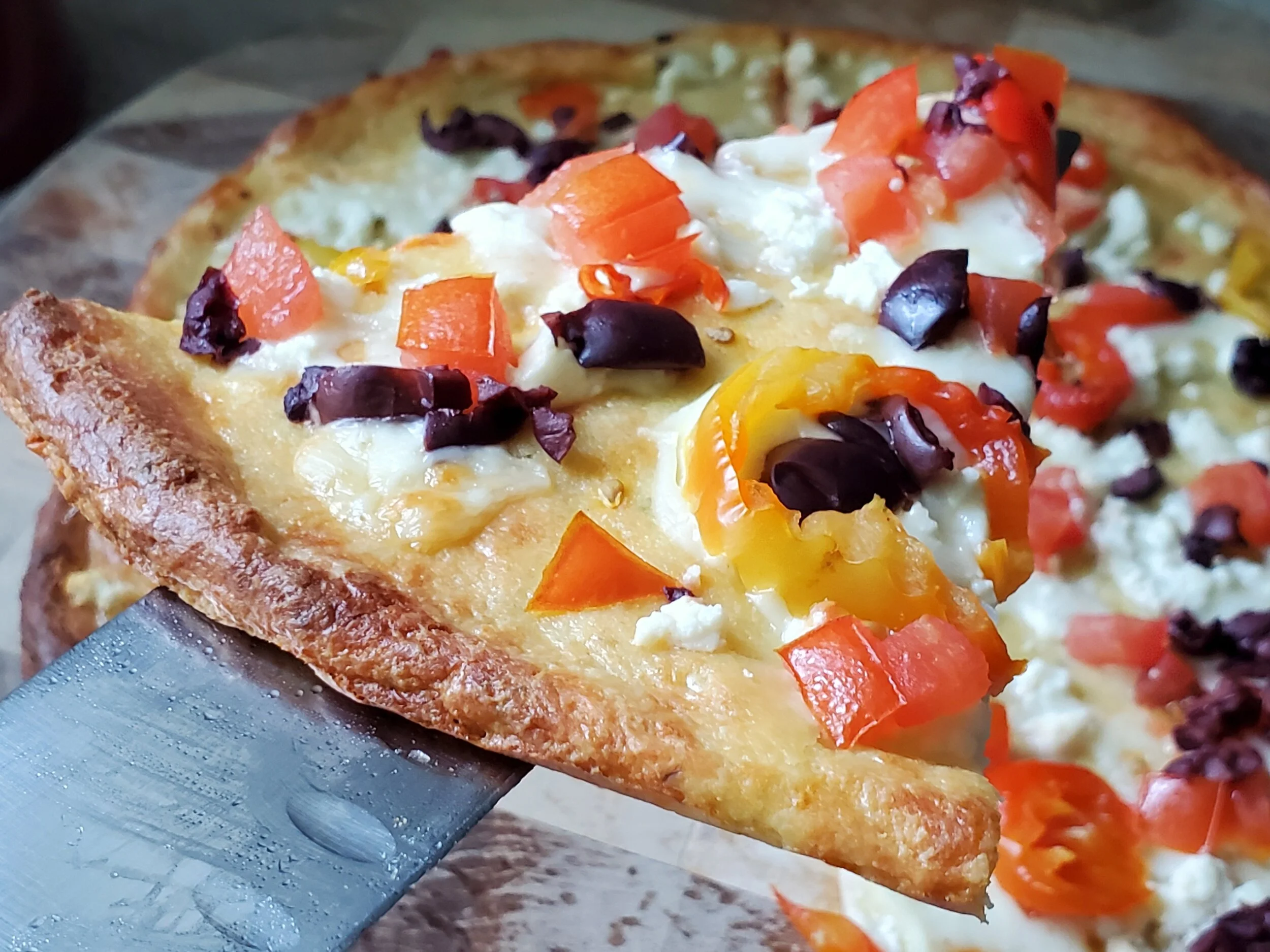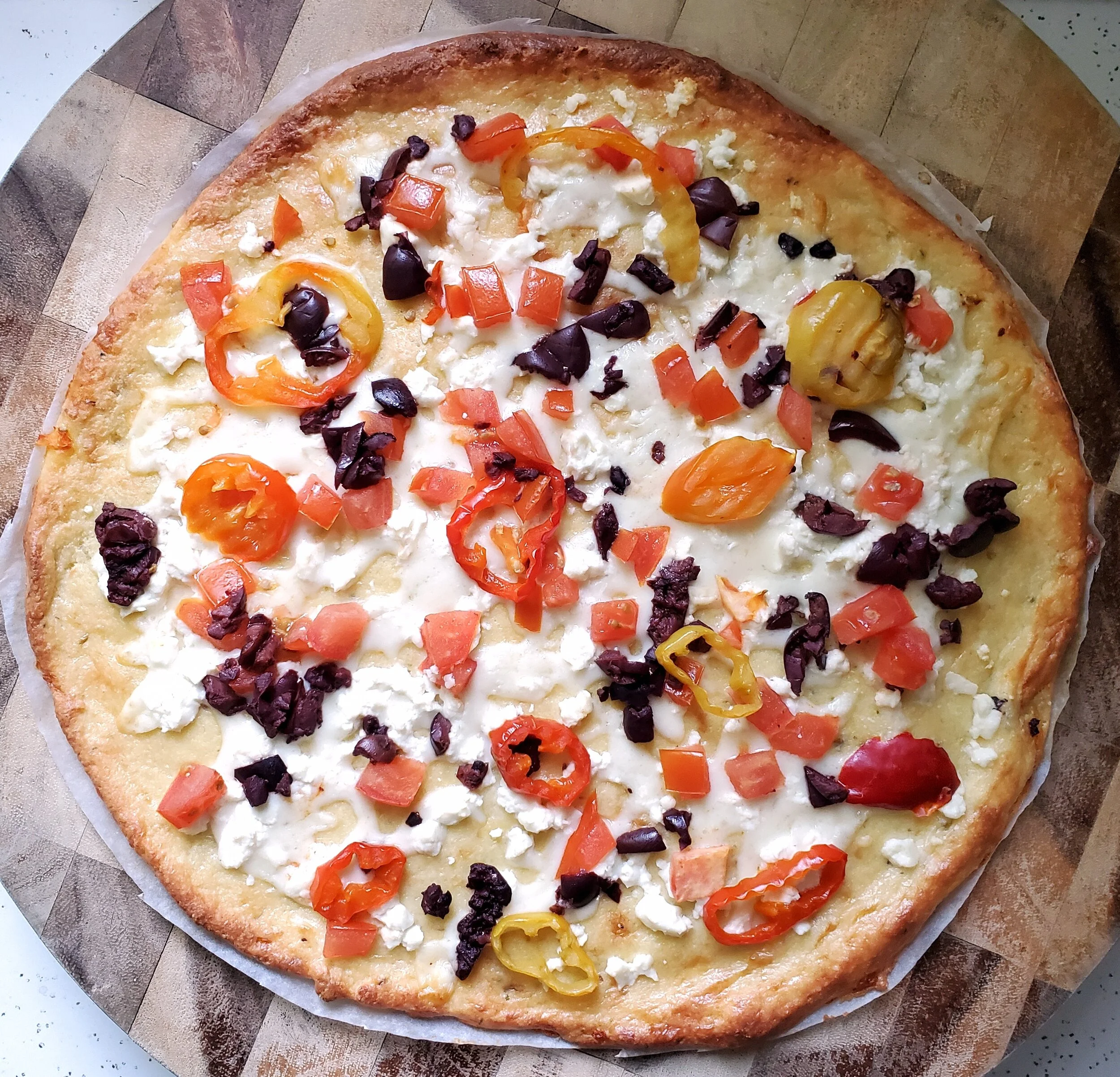 Over the weekend, I ordered supper for the guys from our local pizza joint. Their pizzas are nothing fancy, but so satisfying. Their Greek pizza has an especially special place in my heart. So I decided that it was time to make a keto version of that delicious Greek pizza, served up on a fathead dough!