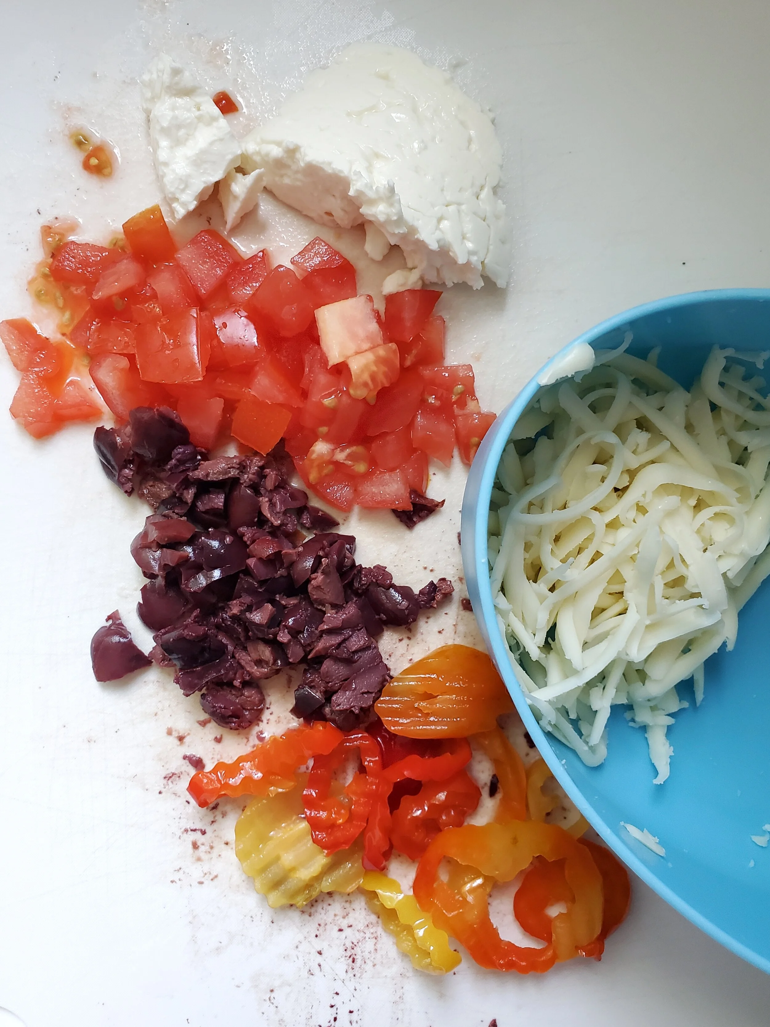 - 1/4 cup kalamata olives, pitted, sliced or diced