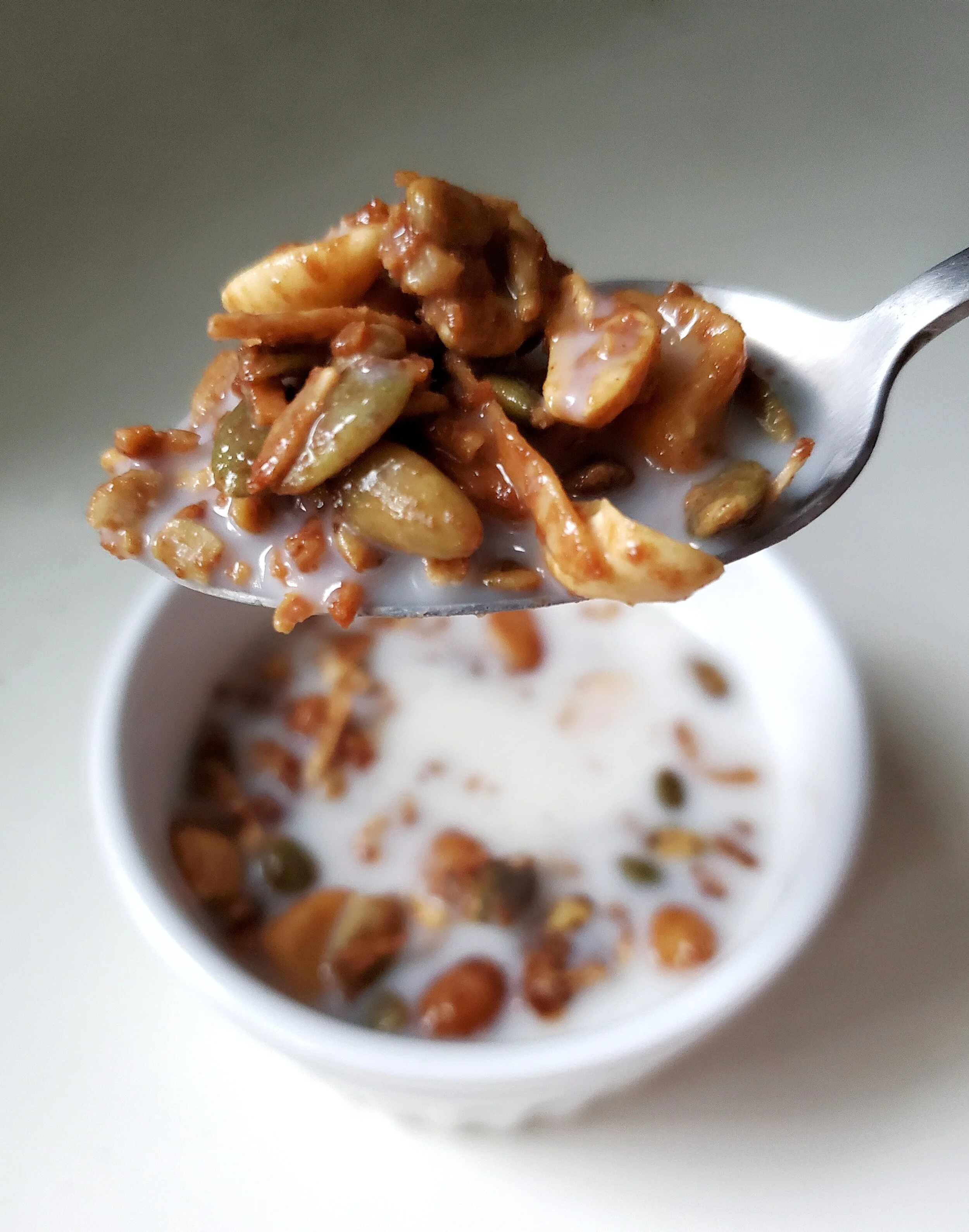 - Enjoy with unsweetened milk alternative, on low carb yogurt or as a crunchy nutty garnish.