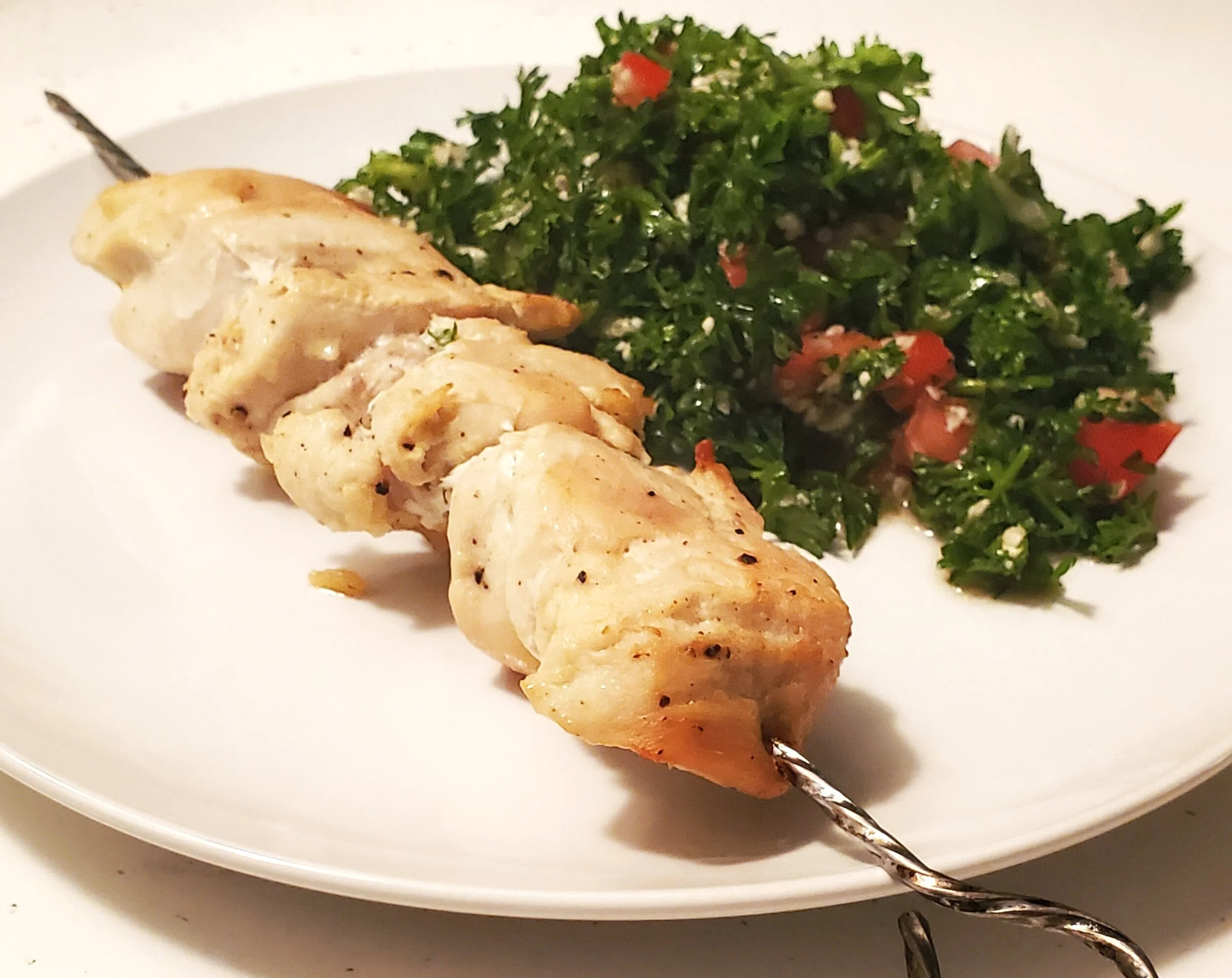 - Serve with your choice of side. These lemon-garlic chicken brochettes are especially delicious with a side of keto tabbouleh salad.