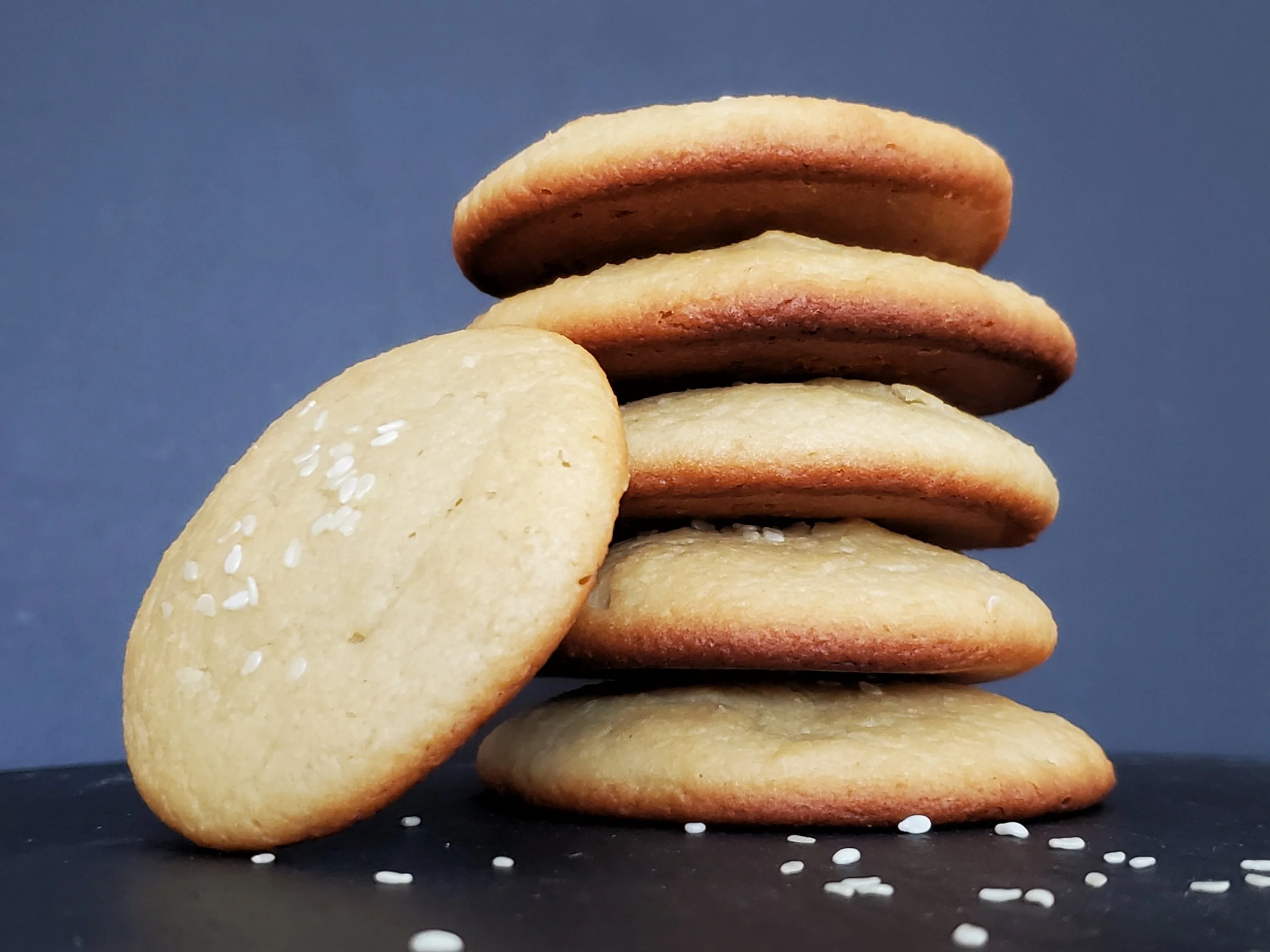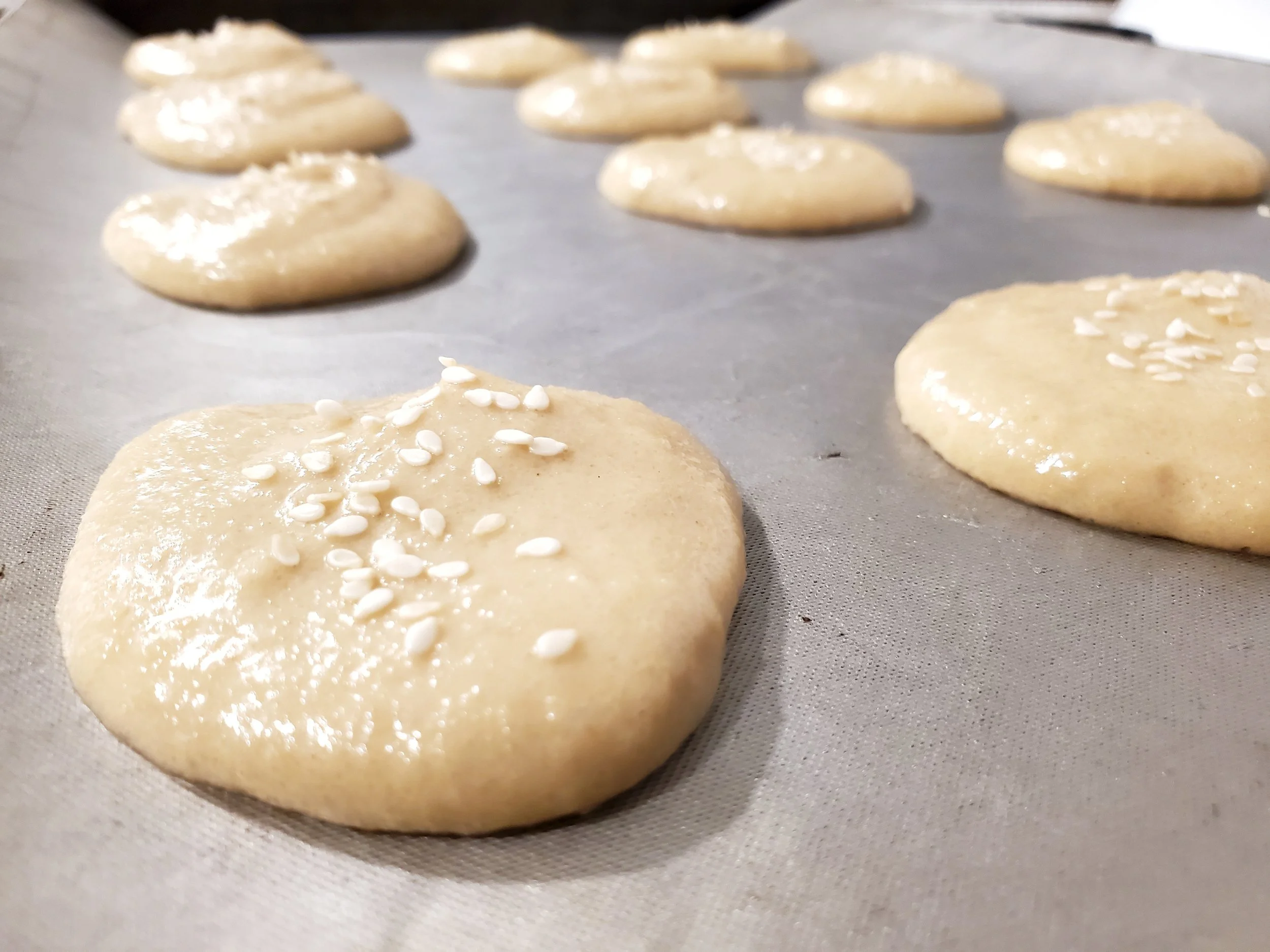 - Sprinkle the sesame seeds over the cookies, then bake 10-12 min.