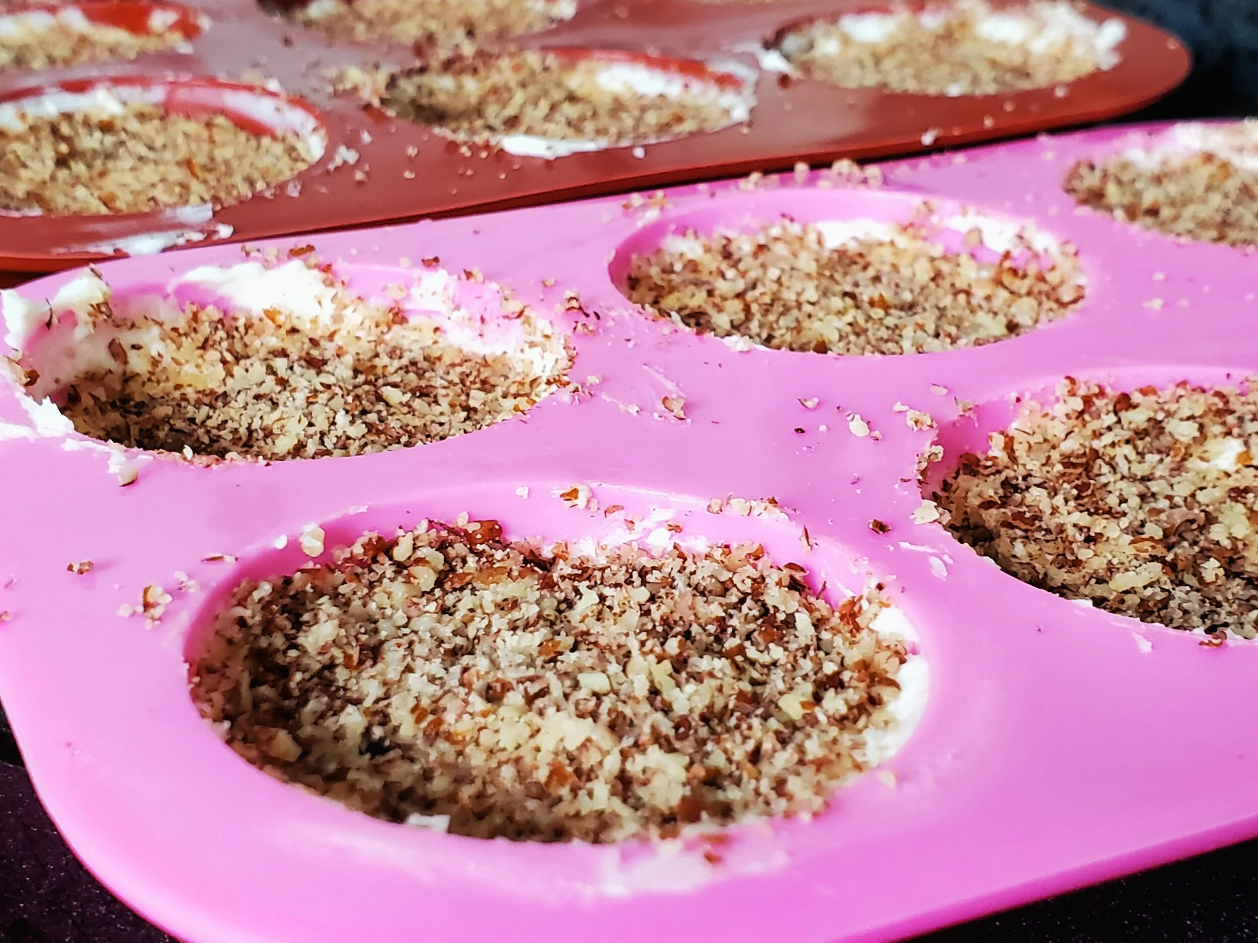 Divide the melted cream cheese mixture between 12 silicone or greased molds of choice.