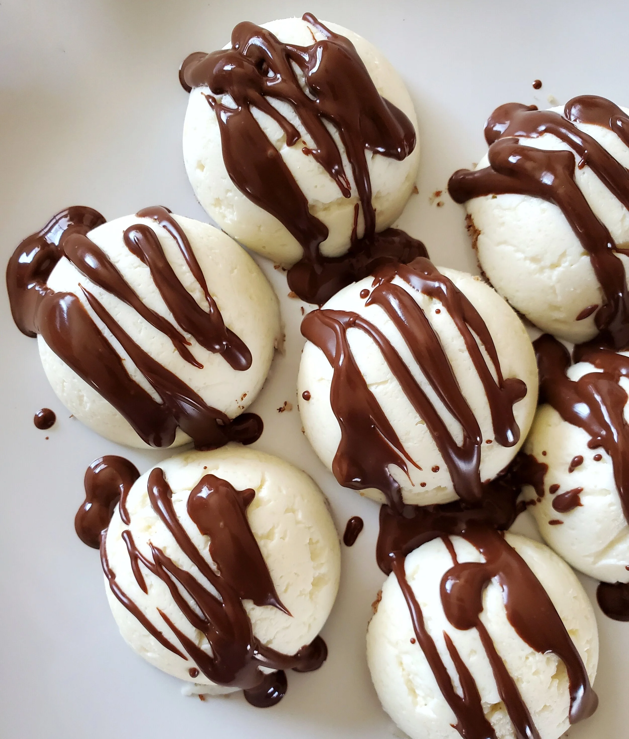 - If adding the optional chocolate drizzle, line the fat bombs up on a plate or cooling rack.