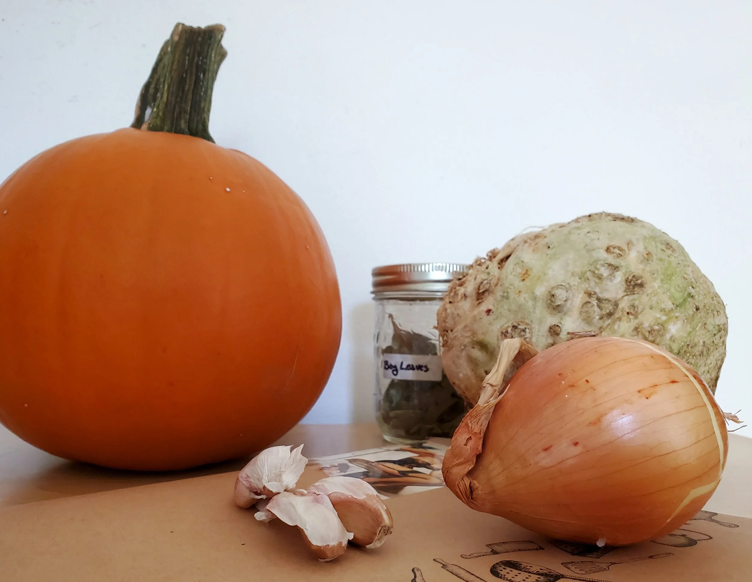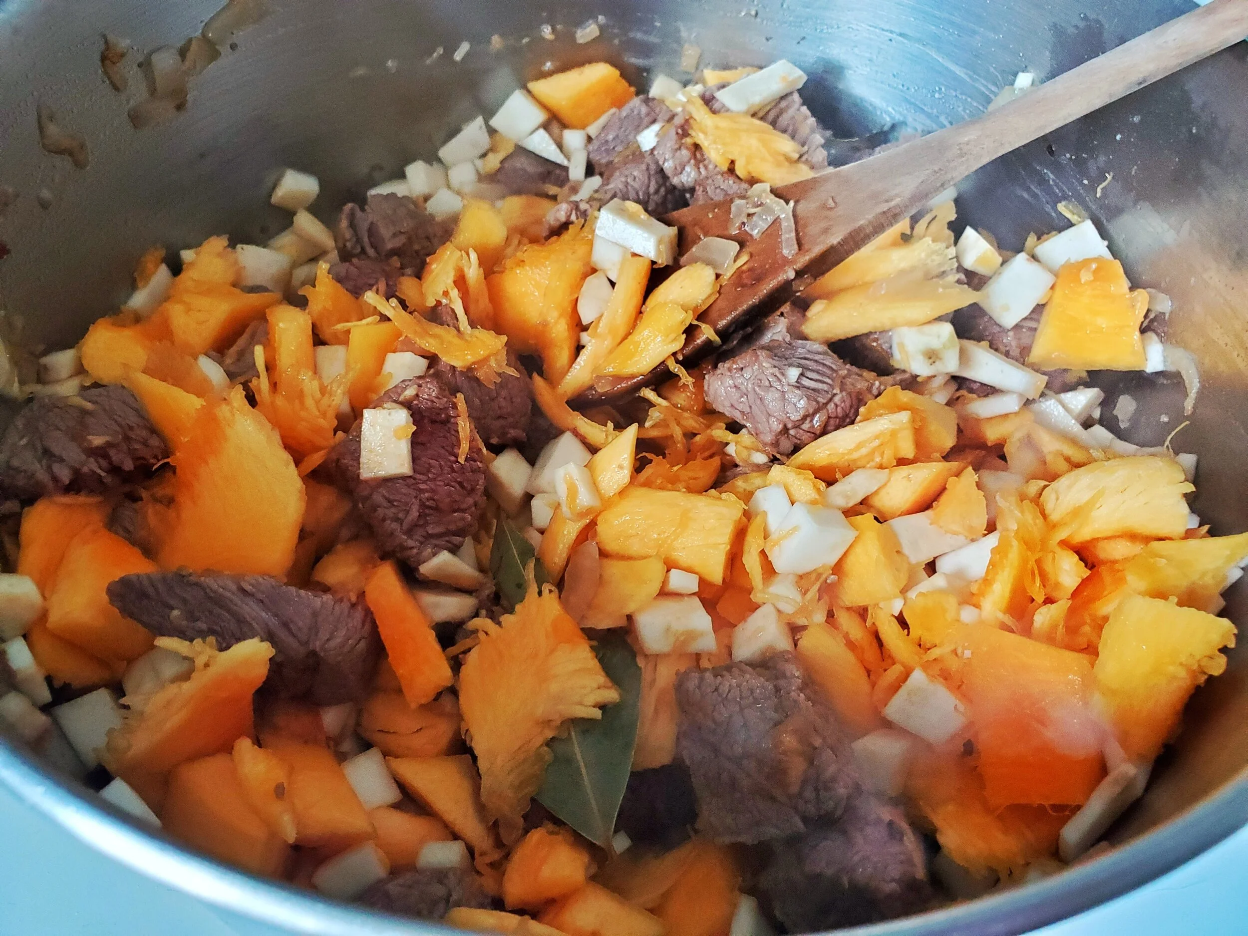- Add the diced celeriac and pumpkin to the pot, and sautee another 3-5 min, stirring occasionally.