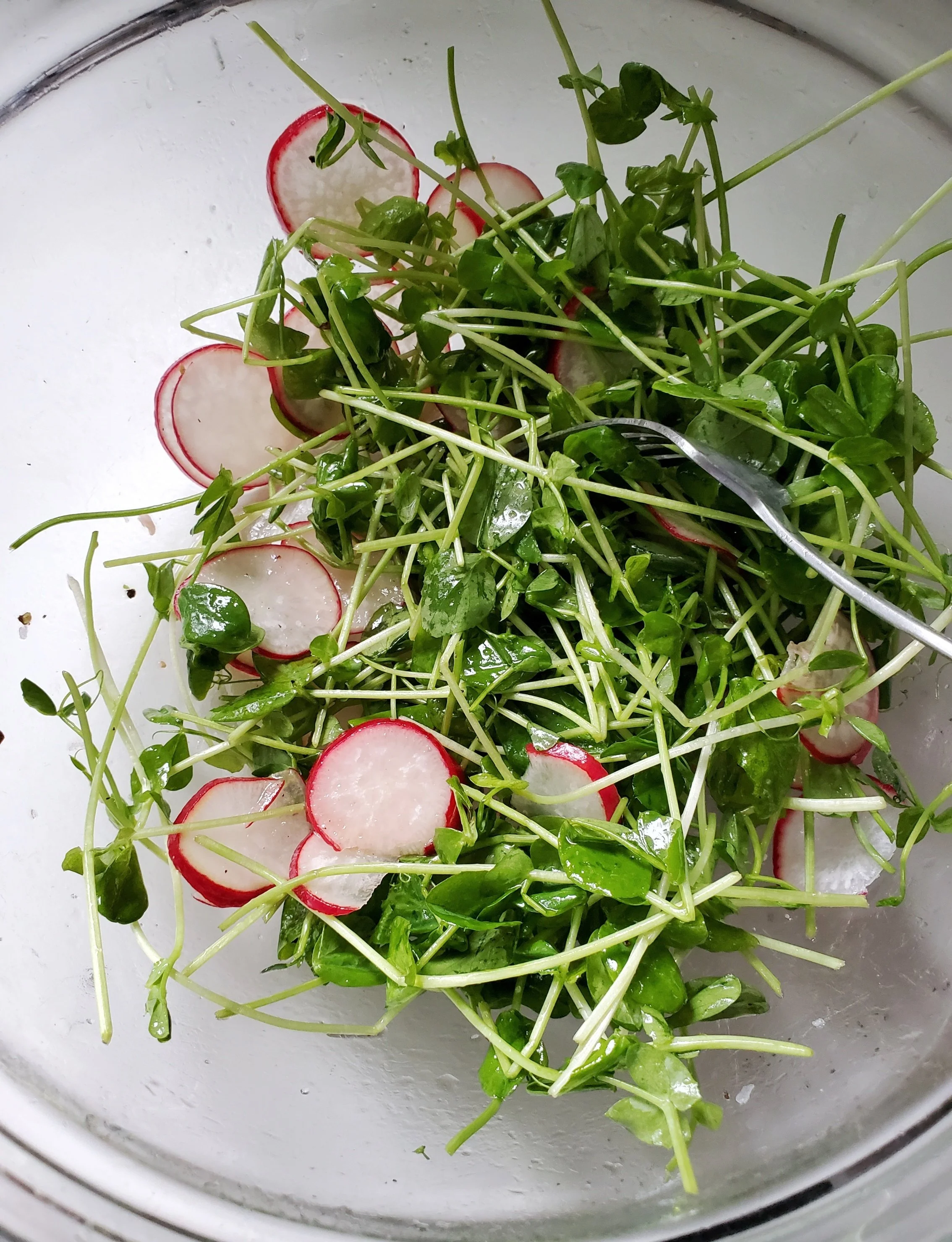 Slice and enjoy the fresh flavours, and the texture of the crisp pea shoots and radishes! 😋