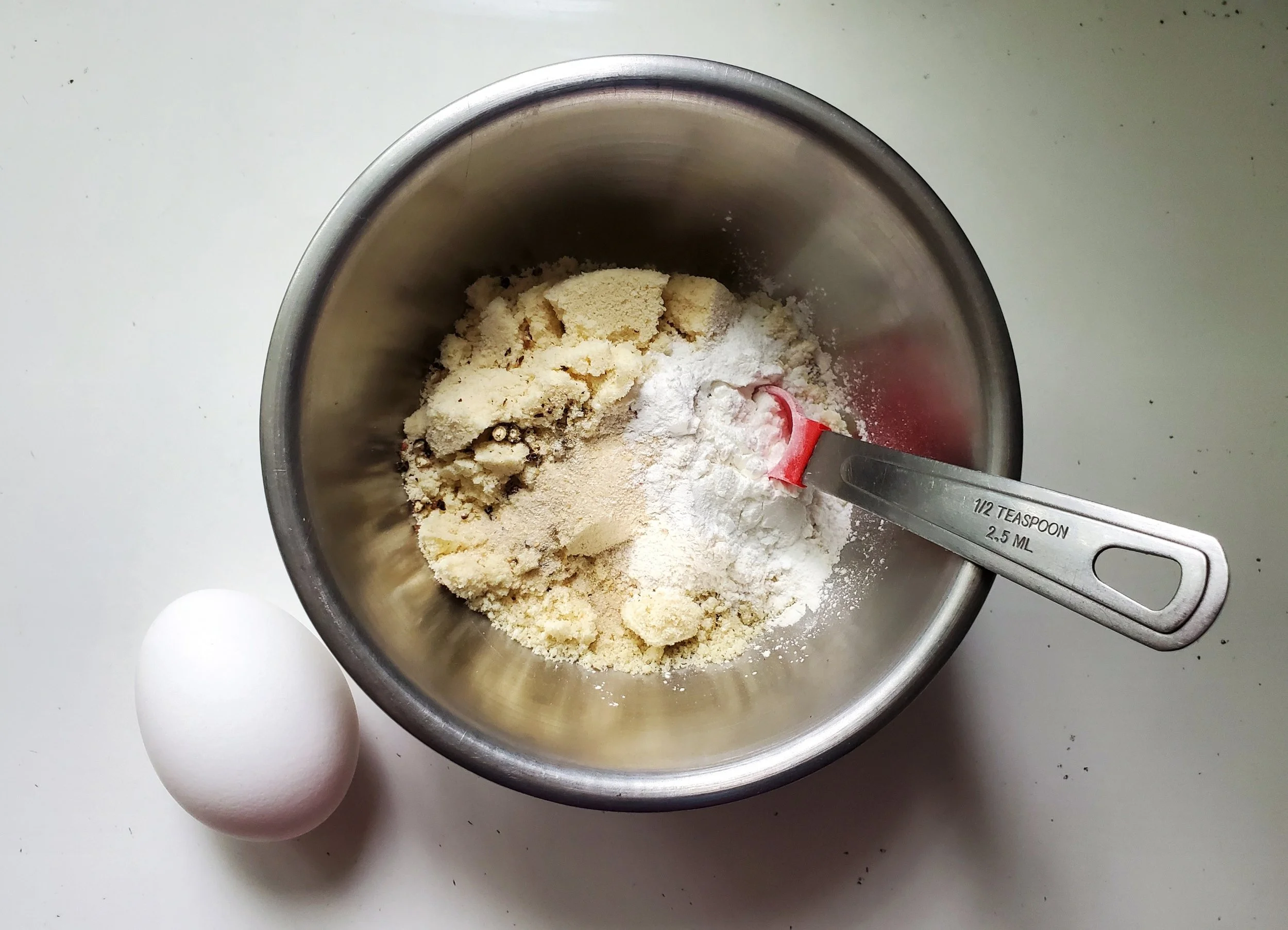 - To prepare the crust, in a small bowl, combine the almond flour, baking powder, onion powder and salt. Set aside.