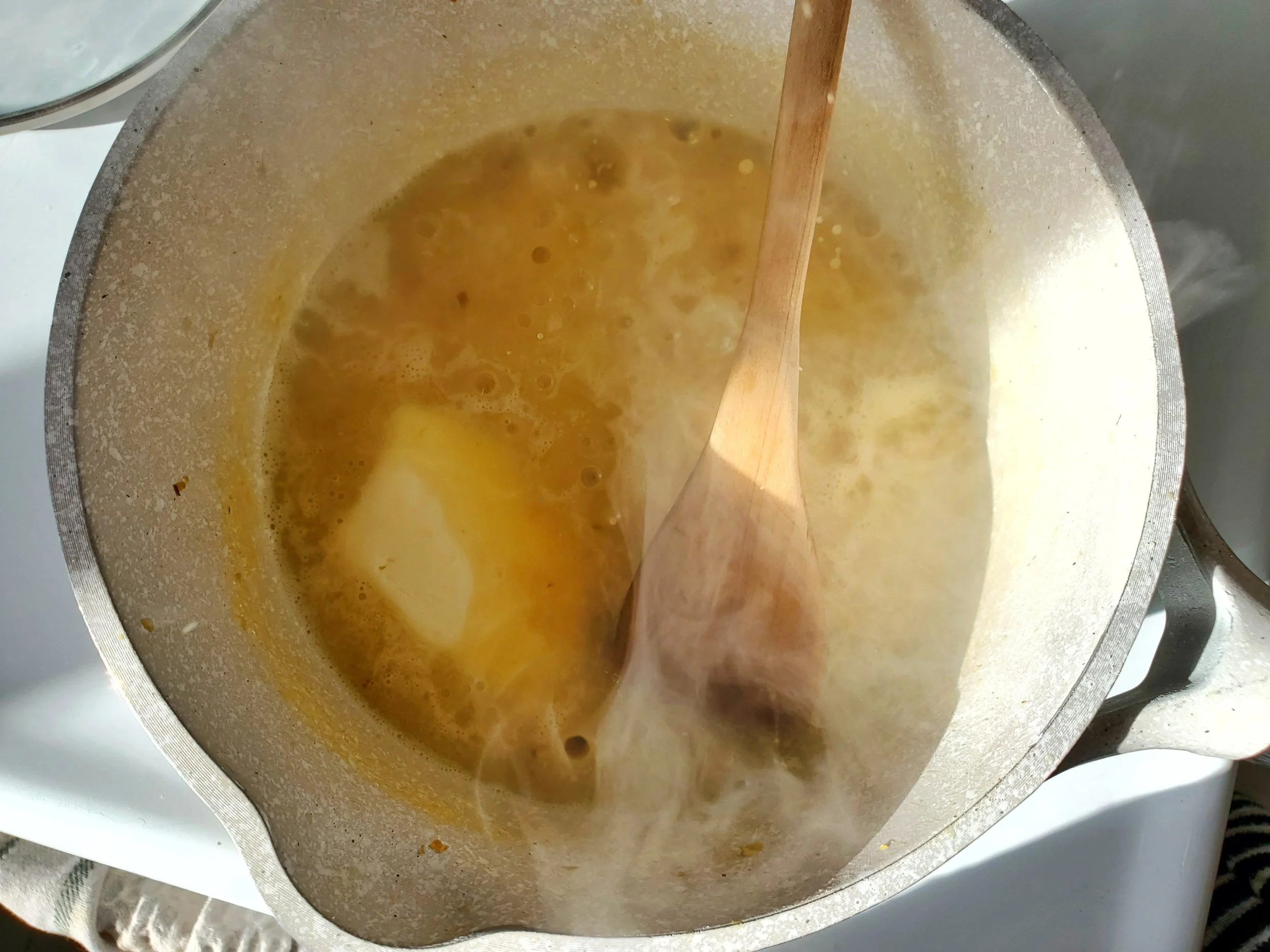 - Stir until the butter has fully melted and combined with the puree, allowing it to simmer another 3-5 min.