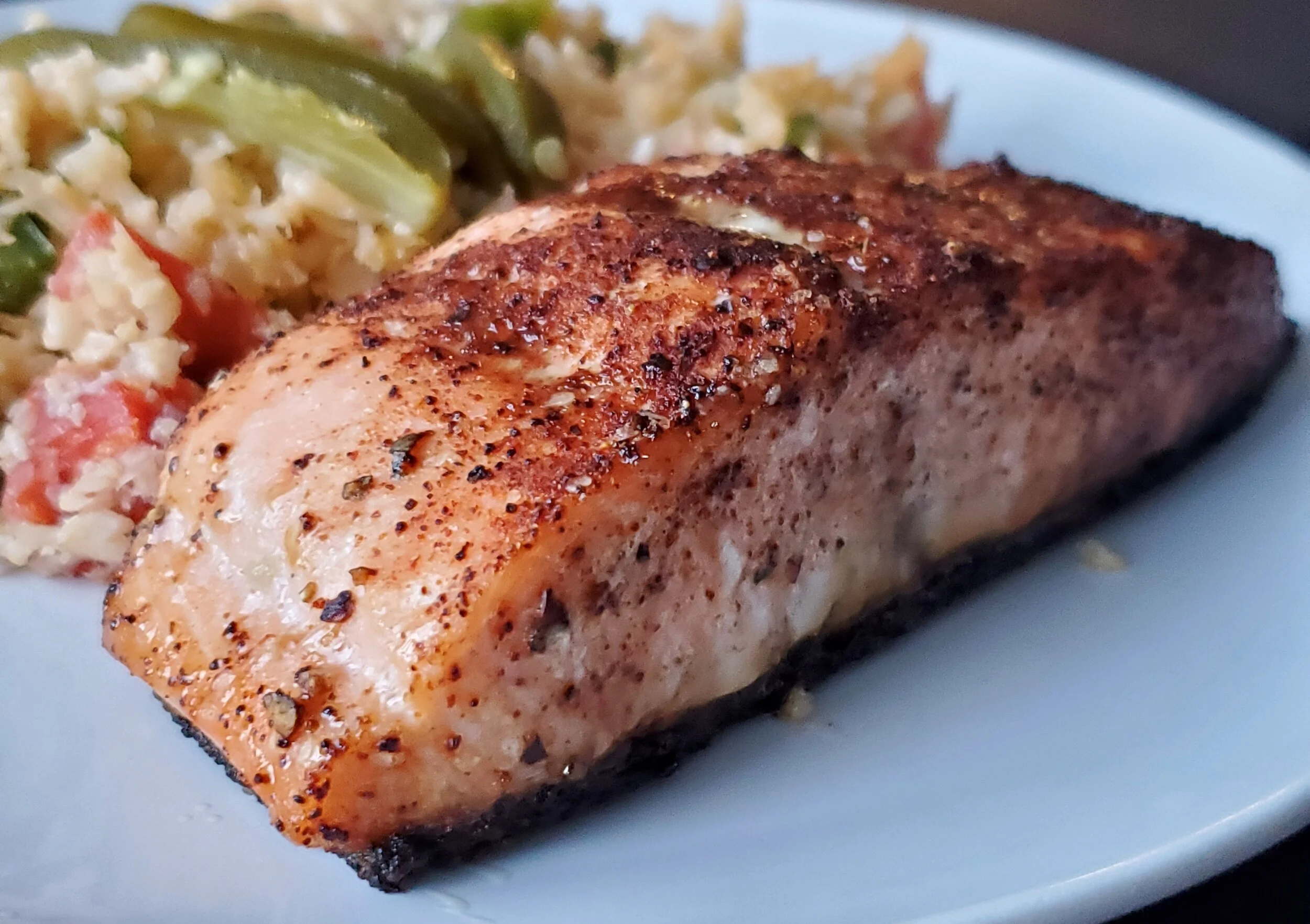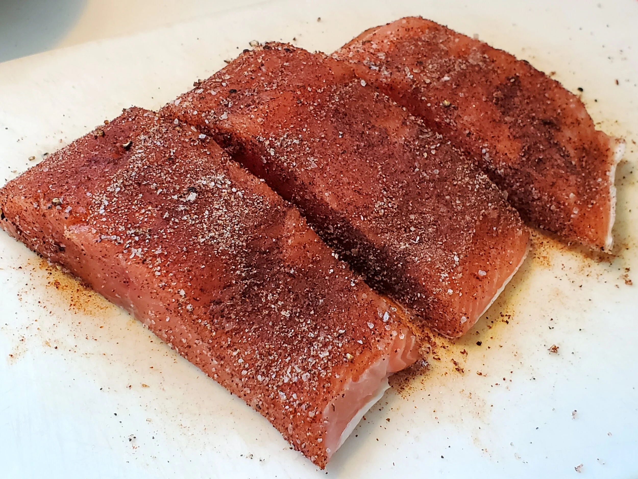 These salmon fillets are rubbed with a Texan-inspired spice mix that is smoky and flavourful. My son practically inhaled his portion!